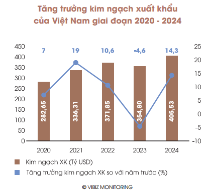 Căng thẳng thương mại và những biến động trong quan hệ quốc tế đã tác động sâu rộng đến thị trường Việt Nam, tạo ra cả thách thức lẫn cơ hội trong hoạt động xuất khẩu. Những xung đột thương mại giữa các nền kinh tế lớn đã thúc đẩy sự dịch chuyển chuỗi cung ứng sang Việt Nam, giúp doanh nghiệp trong nước mở rộng năng lực sản xuất và tăng khả năng tiếp cận thị trường toàn cầu. Tính đến hết năm 2024, Việt Nam đã chủ động tận dụng lợi thế từ 17 Hiệp định Thương mại Tự do (FTA) đã ký kết và thực thi, cùng với hai FTA đang trong quá trình đàm phán, để giảm sự phụ thuộc vào một số thị trường truyền thống và mở rộng xuất khẩu sang nhiều khu vực mới.