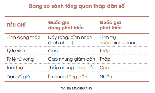 So sánh tháp dân số giữa các quốc gia phát triển và đang phát triển