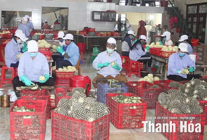 Sơ chế sản phẩm tại cơ sở sản xuất dứa đóng hộp đạt chuẩn OCOP 4 sao (xã Thắng Lợi).