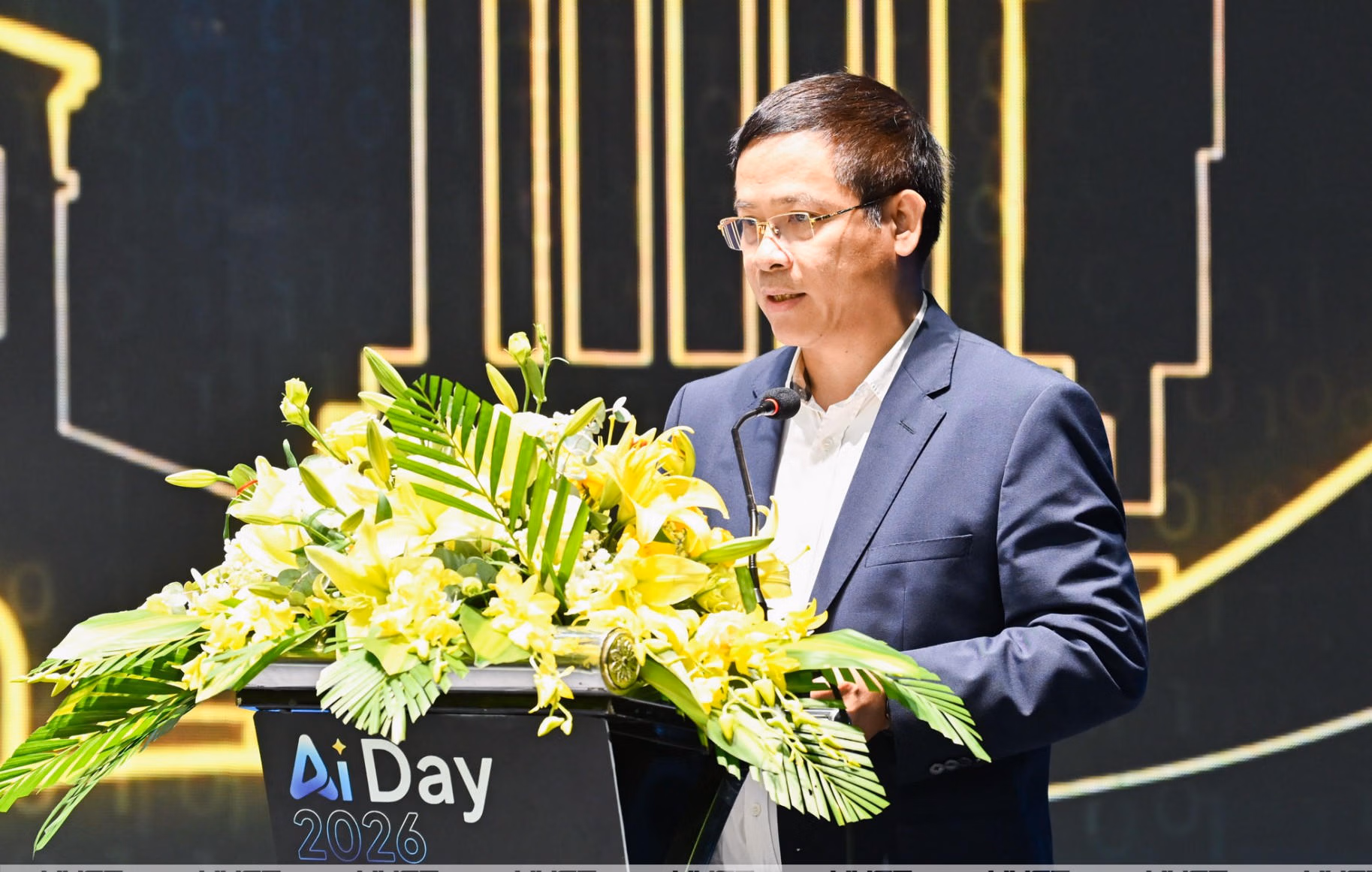 TS Nguyễn Sơn Hải chia sẻ tại AI Day 2026. Ảnh: HUST.