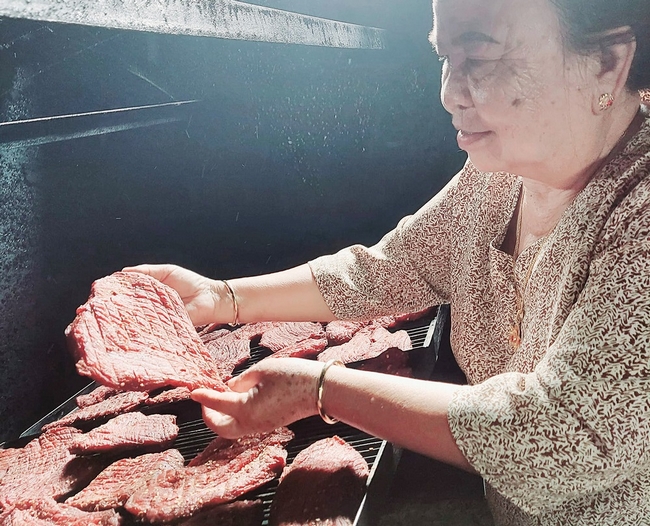 Bà Đèo Thị Sớp thực hiện quy trình sấy thịt