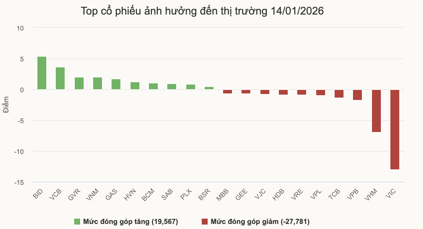 Ví dụ, ở nhóm ngân hàng, các mã có yếu tố vốn nhà nước như BID, VCB, CTG tiếp tục tăng điểm. Tuy nhiên, cổ phiếu của các ngân hàng tư nhân đối mặt áp lực điều chỉnh mạnh. VPB giảm 3,3%, còn HDB, TCB, TPB và VIB cùng mất hơn 2%.