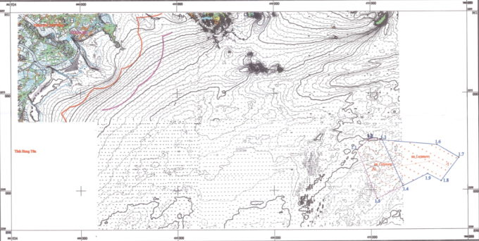 Khu vực biển được giao cho EVN đo đạc, khảo sát làm dự án điện gió ngoài khơi. Ảnh: MAE