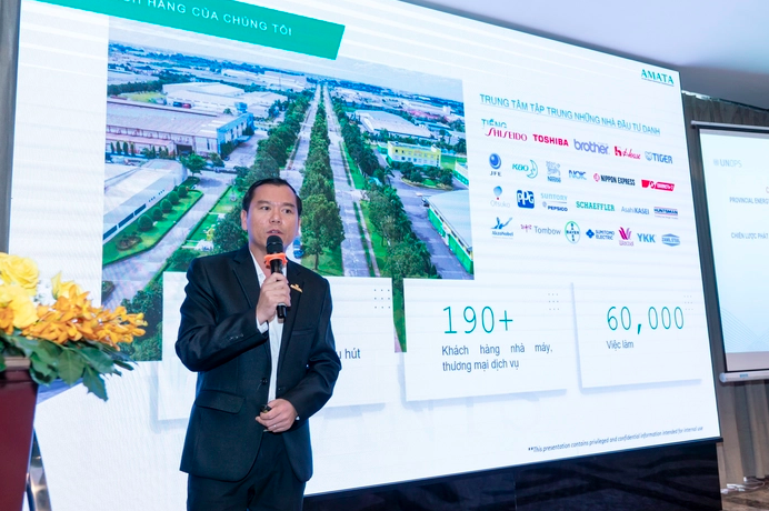 Ông Nguyễn Hữu Nghị, Phó Giám đốc Công ty Cổ phần Đô thị Amata Biên Hòa chia sẻ về mô hình khu công nghiệp sinh thái tại hội thảo