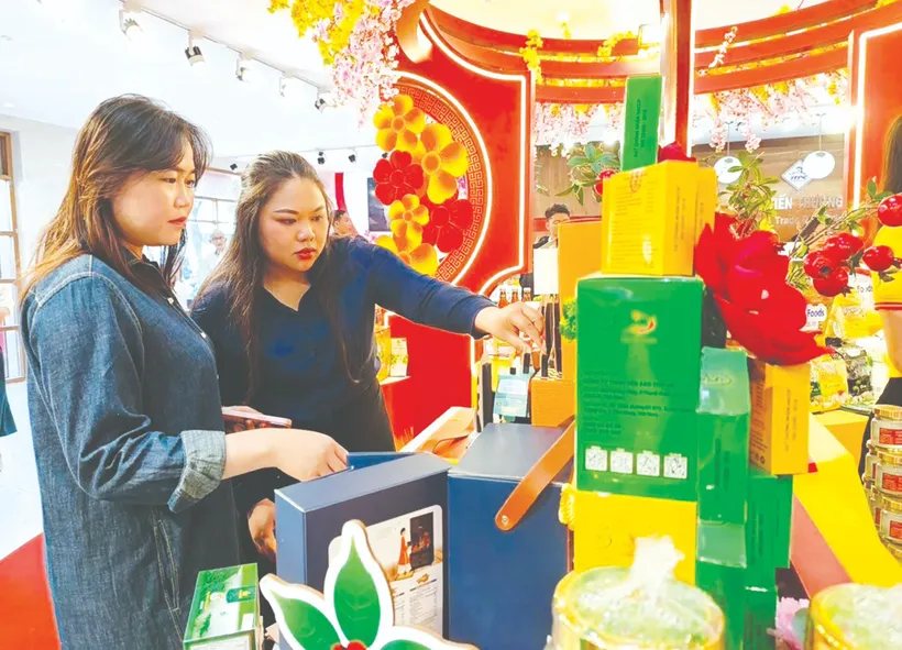 Trưng bày sản phẩm tại Tuần lễ kết nối giao thương và giới thiệu sản phẩm ngành Lương thực - Thực phẩm năm 2025, tổ chức tại TPHCM. Ảnh: HOÀNG HÙNG