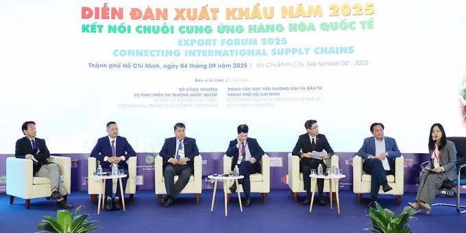 Khách mời tại Diễn đàn xuất khẩu 2025 - kết nối chuỗi cung ứng hàng hóa quốc tế ở Trung tâm Hội chợ Triển lãm Sài Gòn. Ảnh: Hoàng Hùng