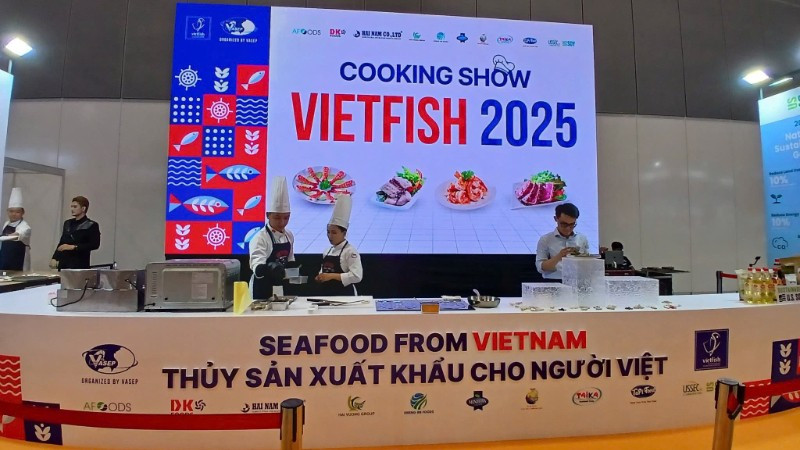 Chương trình giới thiệu sản phẩm thủy sản xuất khẩu cho người Việt tại Hội chợ Vietfish 2025. (Ảnh: THANH YẾN)