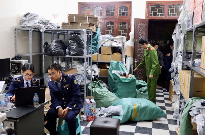 Tại Hà Nội, nhận định nhu cầu tiêu dùng trong thời gian tới tăng mạnh, kéo theo nguy cơ gia tăng các hành vi buôn lậu, gian lận thương mại, Chi cục Quản lý thị trường (QLTT) Hà Nội ban hành, triển khai Kế hoạch số 15/KH-QLTT ngày 26-11-2025 về cao điểm kiểm tra, kiểm soát thị trường, xử lý vi phạm các tháng cuối năm 2025, dịp Tết Dương lịch 2026, Tết Nguyên đán Bính Ngọ 2026 trên địa bàn. Theo đó, đơn vị sẽ tăng cường các cuộc kiểm tra đột xuất, tập trung vào những nhóm mặt hàng phục vụ tiêu dùng dịp Tết như: Bánh kẹo, rượu, bia, thời trang, mỹ phẩm, thực phẩm và thực phẩm chức năng nhằm kịp thời ngăn chặn tình trạng buôn lậu, gian lận thương mại, bảo đảm ổn định thị trường và an toàn hàng hóa cho người dân. Thực hiện kế hoạch trên, ngày 16-12 vừa qua, Đội QLTT số 17 phối hợp Công an phường Phương Liệt kiểm tra cơ sở kinh doanh có địa chỉ tại ngách số 192/56 đường Lê Trọng Tấn, phường Phương Liệt, TP Hà Nội. Đoàn kiểm tra phát hiện cơ sở này đang kinh doanh 1.710 sản phẩm thời trang gồm quần áo, giày dép... có dấu hiệu giả mạo các nhãn hiệu nổi tiếng đang được đăng ký bảo hộ tại nước ta, tổng trị giá lô hàng theo giá niêm yết tại cơ sở là 598.900.000 đồng. Chủ cơ sở không xuất trình được hóa đơn, chứng từ chứng minh nguồn gốc hợp pháp của số hàng hóa theo quy định. Đội QLTT số 17 đang tiếp tục phối hợp với Công an phường Phương Liệt xác minh, làm rõ hành vi vi phạm để xử lý theo quy định của pháp luật.