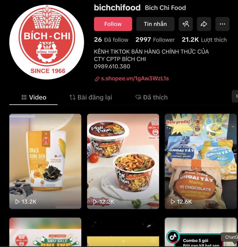 Một kênh bán hàng trên Tiktok của Bích Chi.