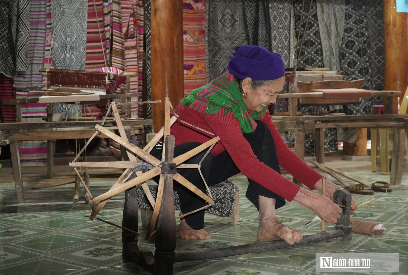 Cụ bà người dân tộc Thái đã hơn 60 năm gắn bó với nghề dệt thổ cẩm.