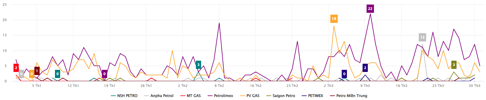 Bước vào quý I năm 2026, thị trường khí hóa lỏng (LPG) tại Việt Nam chịu tác động từ diễn biến giá tăng và nguồn cung có dấu hiệu thiếu hụt cục bộ, góp phần làm gia tăng mức độ quan tâm và thảo luận của các thương hiệu. Trong bối cảnh đó, các thương hiệu lớn như Petrolimex (Tập đoàn Xăng dầu Việt Nam) và PV GAS (Tổng Công ty Khí Việt Nam - CTCP) tiếp tục là hai thương hiệu dẫn dắt về mức độ hiện diện truyền thông, đóng vai trò trung tâm trong các cuộc thảo luận trên không gian mạng. Nhóm các doanh nghiệp còn lại như Anpha Petrol (CTCP Tập đoàn Dầu khí An Pha), Saigon Petro (Công ty TNHH một thành viên Dầu khí thành phố Hồ Chí Minh), MT GAS (Công ty Cổ phần MT Gas), PETIMEX (Công ty Cổ phần Thương mại Dầu khí Đồng Tháp), NSH PETRO (CTCP Thương mại Đầu tư Dầu khí Nam Sông Hậu) và Petro Miền Trung (Công ty Cổ phần Đầu tư và Sản xuất Petro Miền Trung) duy trì sự góp mặt nhất định, tuy nhiên mức độ lan tỏa và ảnh hưởng vẫn có sự chênh lệch rõ rệt. Bài viết này sẽ tập trung phân tích sắc thái thảo luận, mức độ hiện diện và xu hướng cảm xúc của các thương hiệu LPG, qua đó phác họa rõ nét bức tranh truyền thông toàn ngành trong giai đoạn hiện tại.