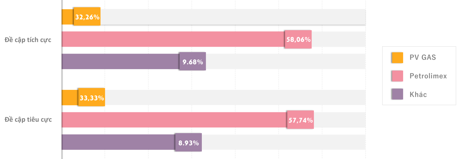 Tỷ lệ đề cập tích cực và tiêu cực của ột số thương hiệu ngành LPG