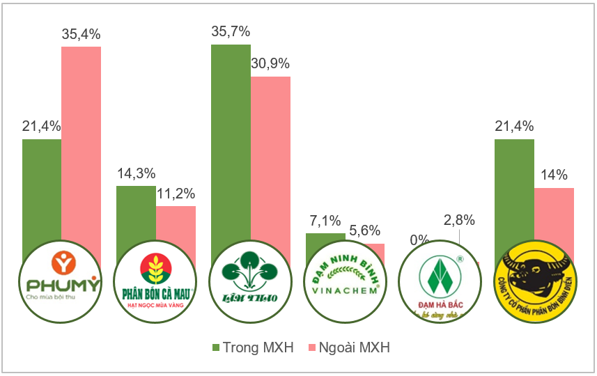 Lượng đề cập trên MXH và ngoài MXH của một số thương hiệu ngành phân bón